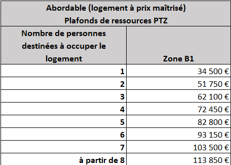 Les plafonds de ressources des ménages, pris sur la base du revenu fiscal N-2 de l'ensemble des personnes qui sont destinées à occuper le logement, ne doivent pas excéder les plafonds définis ci-dessous :